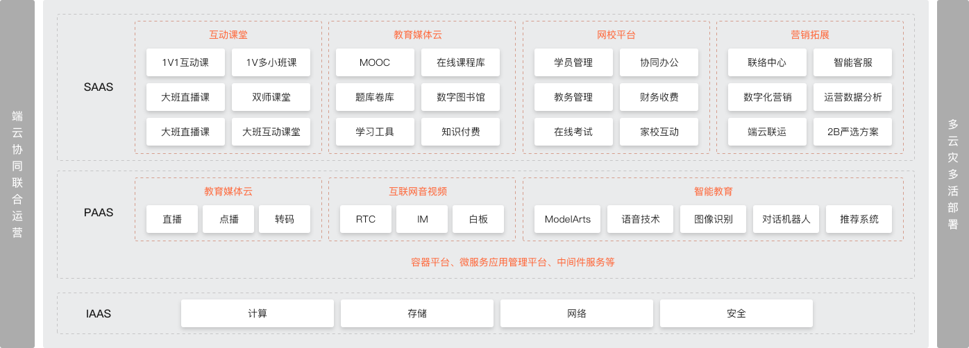 通过主题云服务的多元技术架构,匹配多样教育场景下的算力、部署方式和实时音视频等需求,助力教企转型升级。